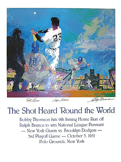 Hand signed by Neiman, Ralph Branca and Bobby Thomson.